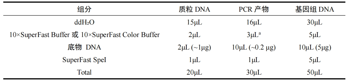 a. 每种快速内切酶的用量为1μL,并根据需要适当扩大反应体系;